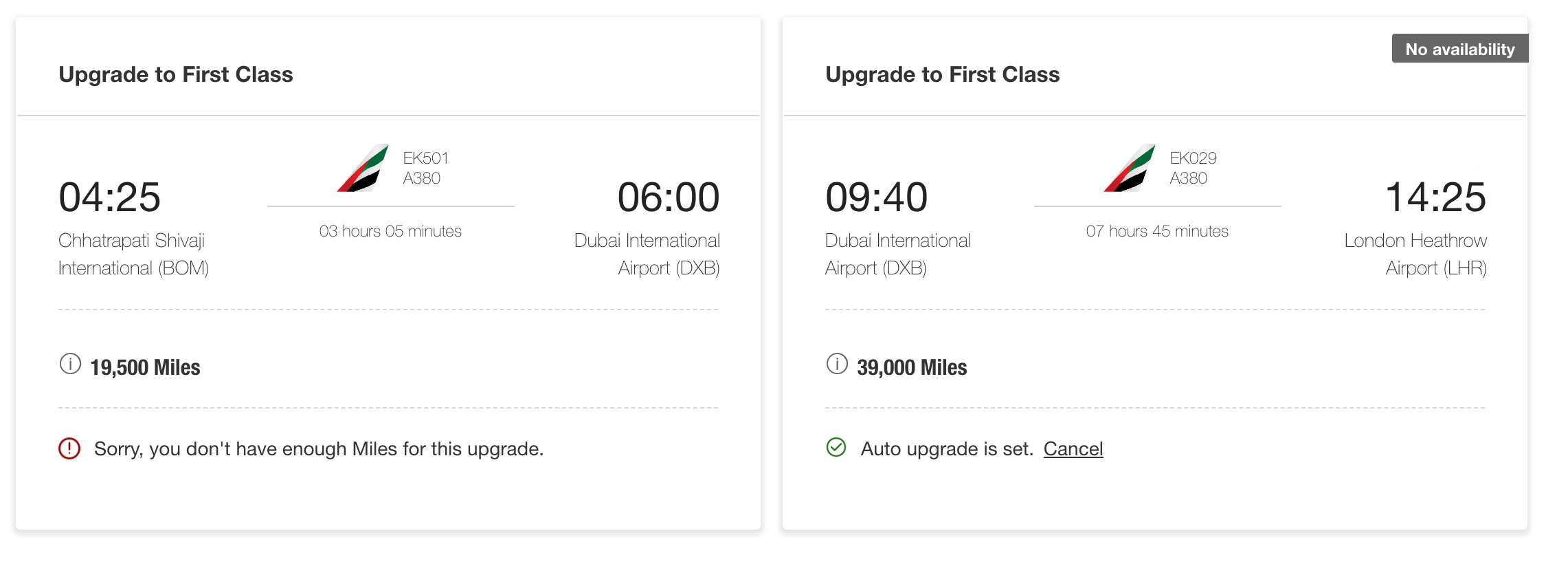 You can check upgrade availability using the Miles Calculator on Emirates’ website.